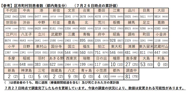 ・新型コロナウイルス感染症の市内感染者発生の状況について(7月27日)(西東京市Web)