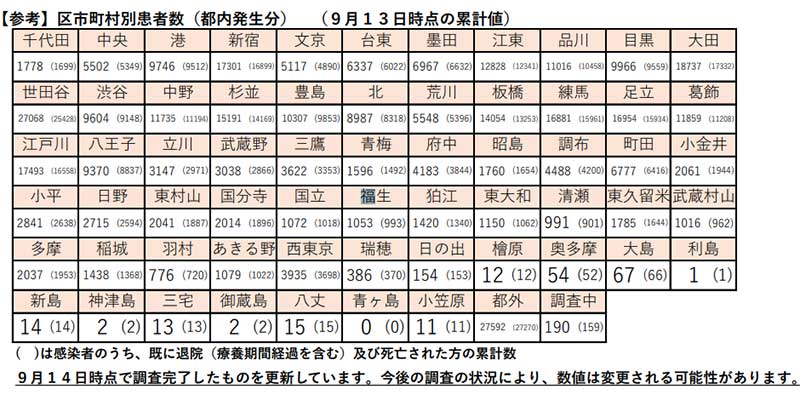 西東京市は9月15日、市内の新型コロナウイルスの週間感染は89人、累計3935人と発表した。新規の週間感染は5週連続の減少となり、4回目の緊急事態宣言が出た7月半ばの状況にほぼ並んだ。(グラフは、市内の新規感染者の推移=西東京市Webから)