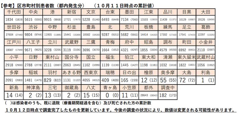 近隣の累計感染は11日時点で練馬区1万7302人、三鷹市3696人、武蔵野市3119人、小平市2918人、国分寺市2063人、東久留米市1822人、清瀬市1032人などとなっている。