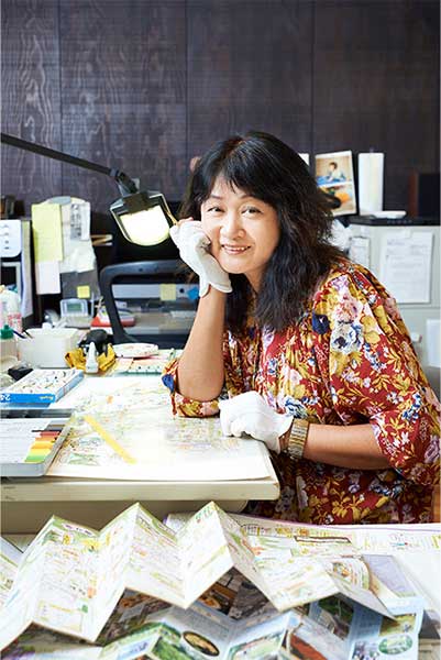 講座の講師として、「まちの地図」づくりの案内役を務めるのは、グラフィックデザイナーの高橋美江さん。武蔵野美術大学卒で、各地のまち歩きツアーのガイド役を重ね、NHKなどテレビにも出演。『絵地図師・美江さんの東京下町散歩』(新宿書房)などの著書もある。