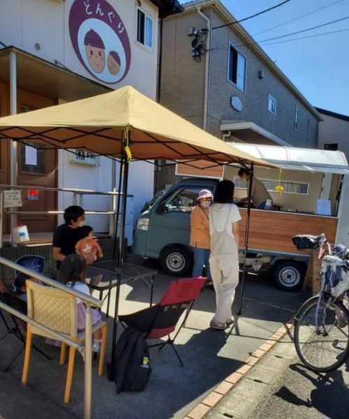大谷里菜さん(36)は、2年ほど「どんぐり」2階に、当初2歳の長男と家族3人で住まわれていた。2020年夏に長女を出産したにも関わらず、しばらくしてゼロ歳児を預かる保育園を見つけ、2021年夏には、西東京市の補助金を得てキッチンカーによるジェラート屋「mucu」を開店してしまった。若いとはいえ、そのエネルギーと行動力に脱帽である。
