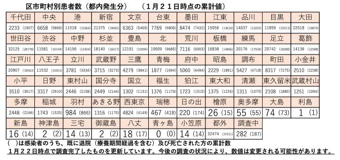 ・新型コロナウイルスに関連した患者の発生について(第2827報)(1月22日、東京都新型コロナウイルス感染症対策本部)(東京都福祉保健局)