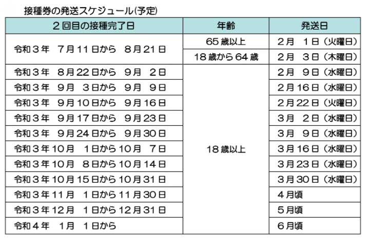 18歳以上への接種券は2月3日から順次発送する。接種券が届けば、接種期間が6ヵ月以上経った日から予約ができる。