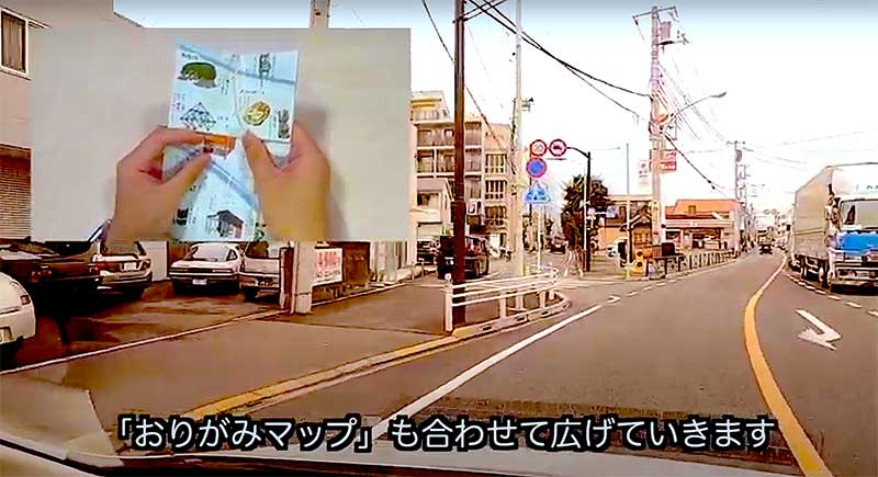 西武バス(本社・所沢市)と武蔵野美術大学(小平市)は、産学協同プロジェクトの第2弾として、バス車窓からの景色を活用して車内で楽しめるレクリエーション「CHIGITTE(チギッテ)」と、バスの進行方向に合わせて広げる新感覚のマップ「ムサビご近所おりがみマップ」の配布を3月中旬から実施している。(写真は、車内レクリエーション「CHIGITTE」の紹介動画。西武バス公式YouTubeチャンネルから)