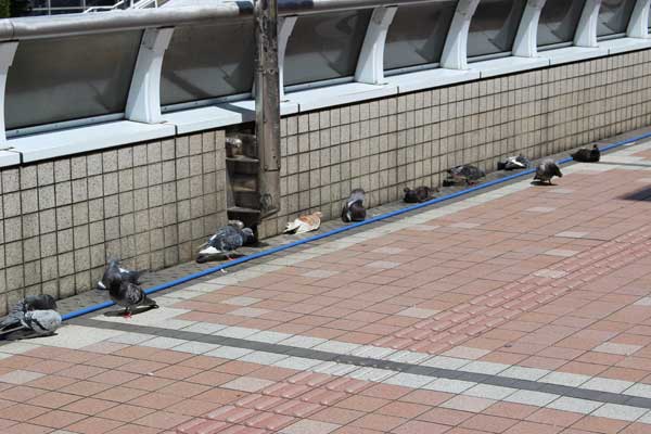 日向ぼっこか、日光浴か、眠り足りない鳩たちの平和なまどろみなのだろうか-。この日の東京は珍しく雲が晴れ、日射しが熱い。気温は30度を超えた。