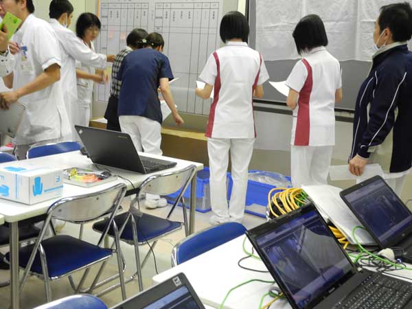 訓練を終え、佐々総合病院総務課の山田裕隆さんは、「訓練の総括はこれからだが、今回は災害時の状態に近づけるため台本を割愛した。対策本部の担当者たちは災害状況を一つひとつ確認しながら対応策を考えたため、指示などを出すタイミングが遅れた。今後は迅速な対応ができるよう、ぶっつけ本番の訓練も取り入れ実際の災害発生時に備えたい」と抱負を述べた。西東京中央総合病院総務課の黒沢圭一係長は、「トリアージの後バタバタしてしまった。透析患者の搬送訓練ではFAXで患者の状態を知らせてから無線で連絡する予定だったがFAXを送ることができなかった。改めて病院全体へ事前の訓練周知を徹底する」と話していた。