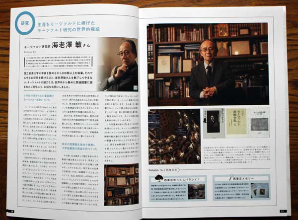 この冊子作成は、西東京市図書館40周年記念事業の一つ。A4版カラー、36ページ、2000部。記念事業はこのほか、「縁(ゆかり)講演会」シリーズが進行中。日本サッカー協会の岡田さん、作家の中村さんの回は終わり、3月6日は保谷こもれびホールで海老澤さん、3月27日は田無公民館で小出さんと広瀬さんが講演する。冊子は、市内の図書館で読めるほか、「縁講演会」で無料配布予定。デジタル版も図書館Webサイトに掲載する。