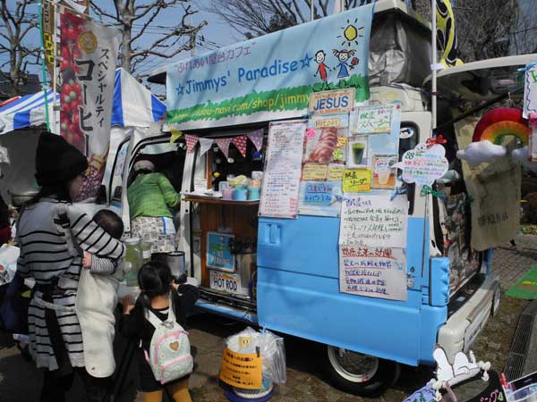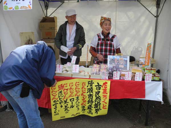 西東京市からは、ホウレンソウや白菜、白ネギなど新鮮な地場産野菜を載せたファームカーなどが登場。東村山市からは3年連続ご当地グランプリに輝いた本格中国料理「彩雅」の「黒焼きそば」が出品。長蛇の列ができた。東久留米市の「せんべい汁」は居酒屋「じょんた・じょんた」の逸品。東北出身の女将お勧めの煮込み用せんべいとキャベツや大根など地場野菜をたっぷり入れた汁物だ。小平市は、小平産の名産品ブルーベリー飲料、清瀬市は地場野菜を使用したパンなど販売していた。