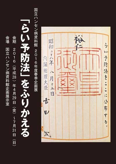 ・2016年度春季企画展 「らい予防法」をふりかえる(国立ハンセン病資料館)