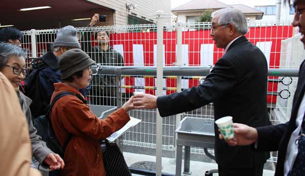 式典に参加した向台町1丁目の小口敬子さん(75)は、振る舞われた水を飲んだ後「いつも病院に来て診てもらっているけれど、いつどんな災害が起きるか分からない。身近に飲み水があるのは心強いですね」と話していた。