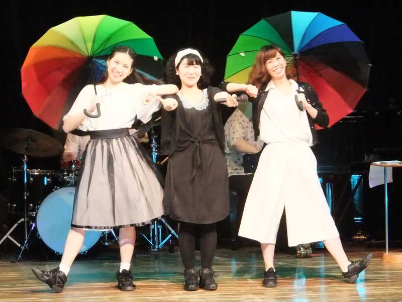 いよいよのメインイベントは、少しオトナのコンサート。中高生や大人の参加者も多く、会場はほぼ満席。オペラシアターこんにゃく座で活躍中の飯野薫さんと、飯野薫さんを小学生時代から指導してきた泉岡まさよさんの師弟コンビを中心に、プリンセスシアターの王子役・小野寺彩乃さん、プリンセス・長谷川翠花さんも出演。皆、西東京市で育ったアーティストたち。生バンドの迫力ある演奏にのせ、コミカルに、しっとり美しく、明るく元気にと、表情豊かな歌と踊りで観客を魅了した。