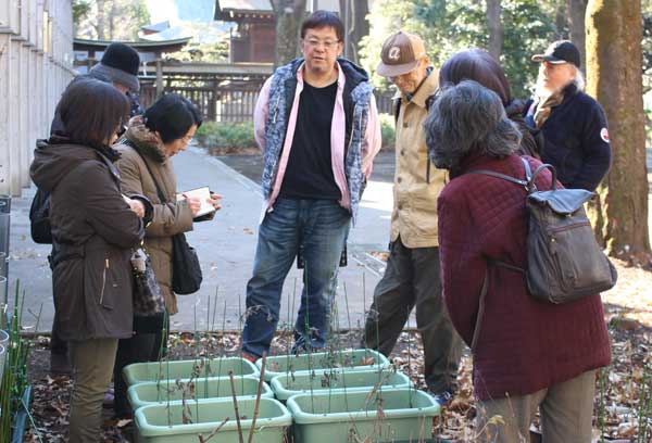 この「友の会」は、昨年10月から3回続きで始まった谷戸公民館の講座が母体。同館専門員の小幡洋子さんが環境サポーター・はちどりの会代表の柴公倫さんと出会ったのがきっかけだった。柴さんとの話し合いから講座「始動!紫草復活プロジェクト」が生まれた。講座修了後は受講者らが三鷹の育成畑を見学し、準備会を重ねて「友の会」設立にこぎ着けた。谷戸公民館は共同栽培の場所を提供し、紫草復活を積極的に後押しする。