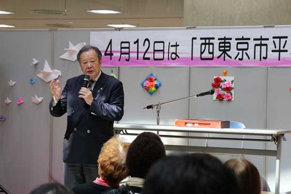 市とともにこのイベントを共催する「非核・平和をすすめる西東京市民の会」の鈴木治夫会長は「世代が代わり、平和をどう維持し、実現するのかが大事な時代になった。戦争を起こさないために、私たち一人ひとりが何をしないといけないか、何が出来るかを考えたい」と最近の世界の動きに触れながら言葉を継いだ。