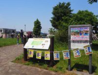 4000年前の大集落跡が今も眠る「下野谷遺跡公園」(西東京市東伏見6丁目)で[2017年]5月21日(日)、「縄文のムラで春風と遊ぼう」が今年も開かれた。季節外れの真夏日となる中、約100人の親子連れなどが、凧あげや縄文時代の糸作り体験、VR(バーチャルリアリティ)で遺跡を冒険した。(写真は、今回で10回目となった「春風と遊ぼう!」)
